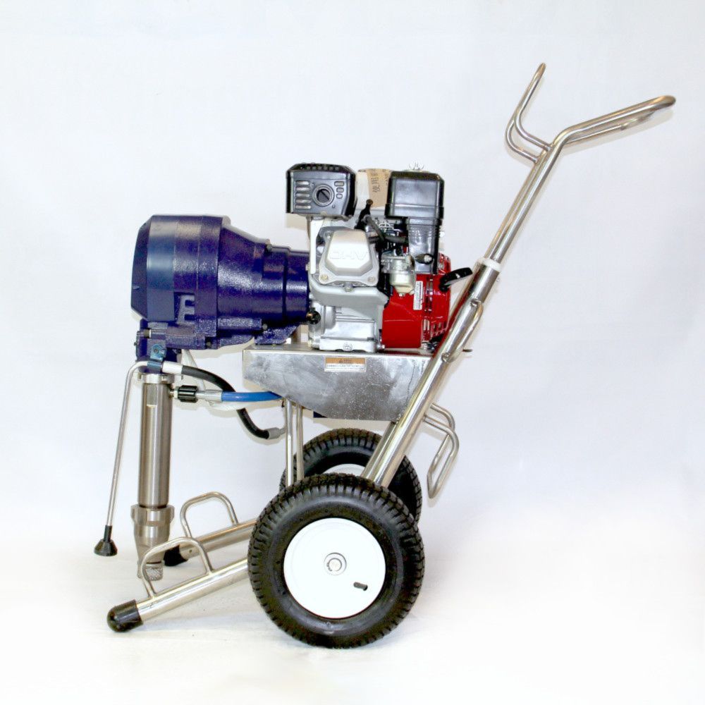 Безвоздушный окрасочный аппарат с бензиновым приводом PremJet PJ 8341G предназначен для профессионального применения ЛКМ высокой вязкости с содержанием абразивов для грунтования и окраса больших объёмов в промышленности и на производстве, для нанесения полимерной шпатлёвки, огнезащитных и двух компонентных составов с одновременным применением двух краскораспылителей