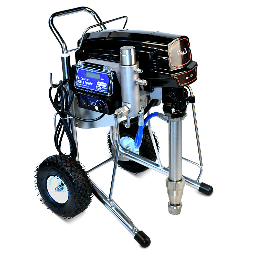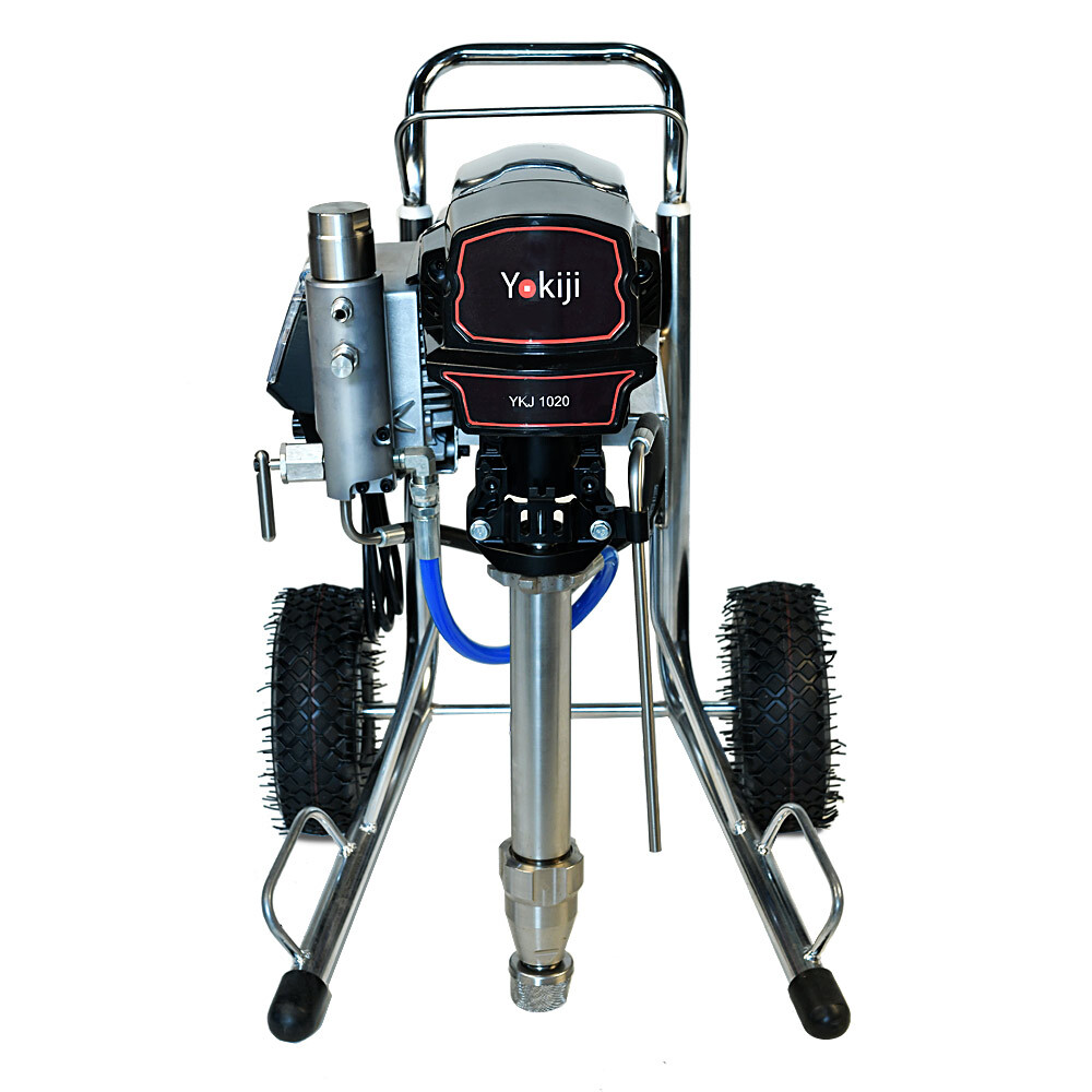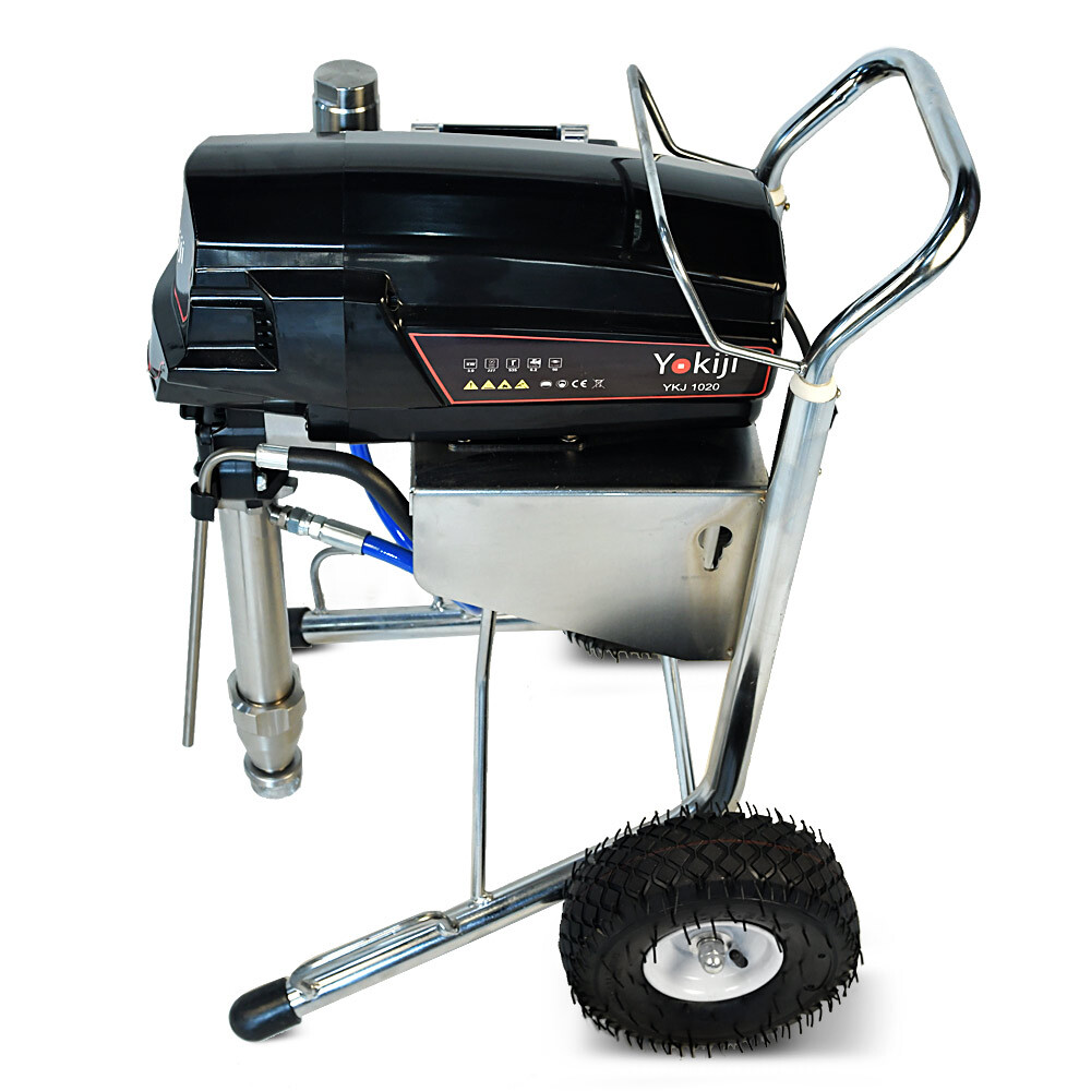 YOKIJI YKJ 1020 – окрасочный аппарат для распыления материалов низкой, средней и высокой вязкости; оснащен выходами на 2 малярных поста. Аппарат имеет высокую скоростью подачи материала - производительность до 6,2 л/мин., при этом более компактный размер и меньший вес по сравнению с аналогичными агрегатами. Подключение шланга возможно до 90 метров при работе материалами низкой и средней вязкости на 1 пост и до 45 метров на 2 поста.